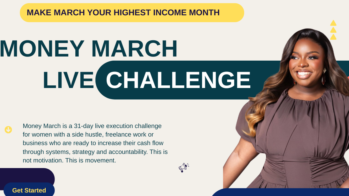 Money March Live is the 31-day execution challenge that shows you how to structure your income properly, generate consistent cash flow and stop shrinking your earning potential.